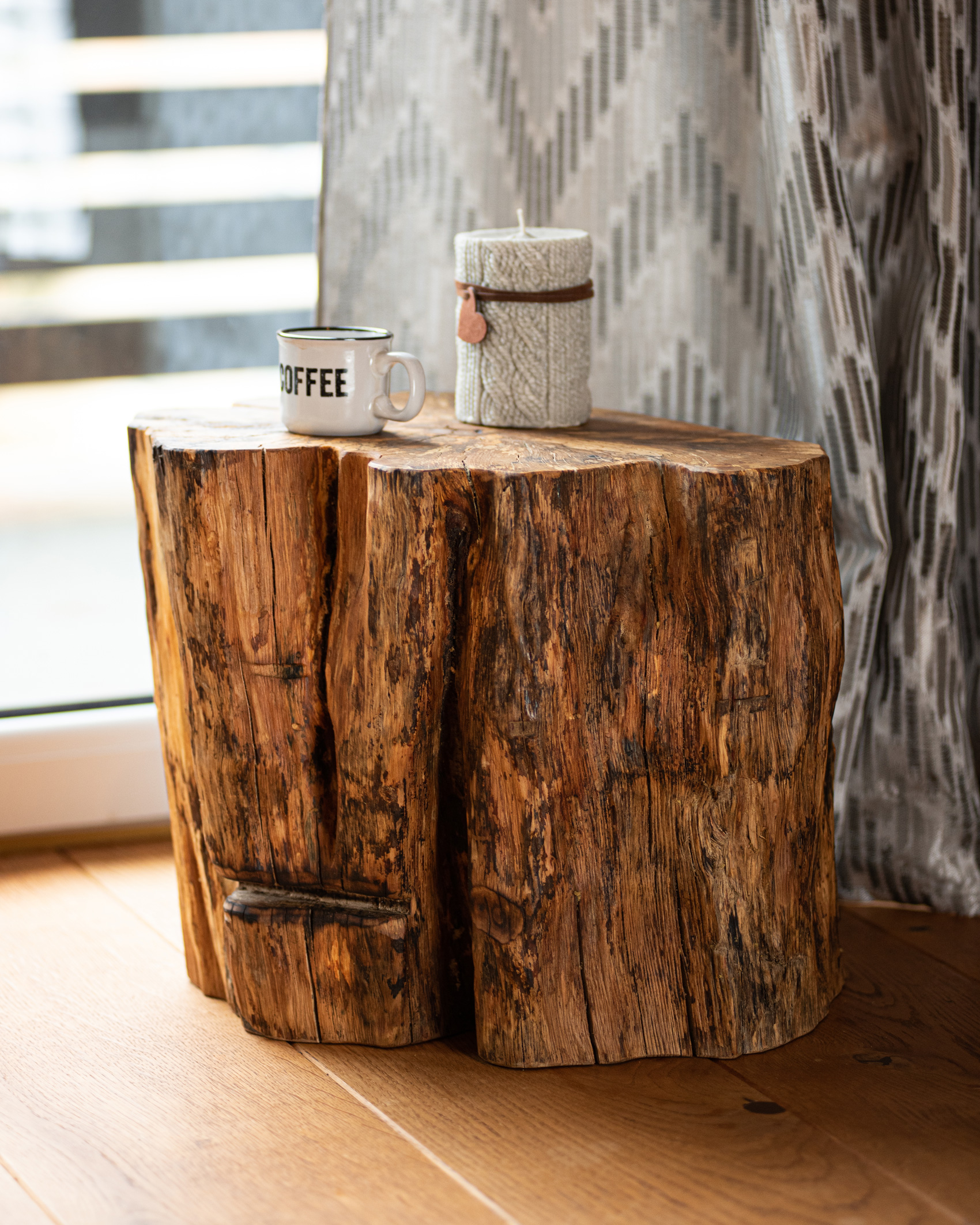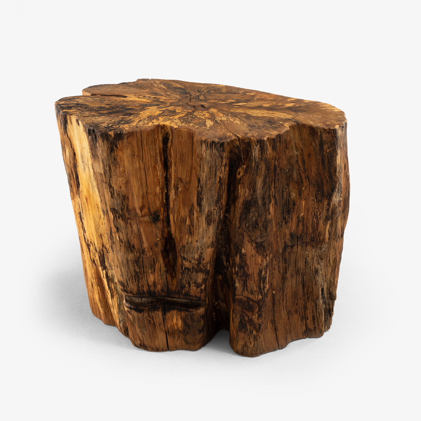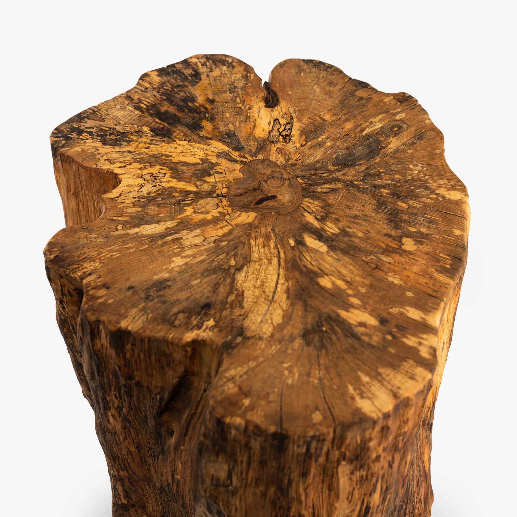 Taburetka z hrabového dreva z okolia Žiaru nad Hronom. Drevo bolo 4 roky vystavené vonkajším poveternostným podmienkam, aby sme docielili jeho výnimočný vzhľad. Vďaka vonkajšiemu uskladneniu drevo zvetralo a jeho farebnosť je ozvláštnená drevnou hnilobou. Boky taburetky sú kefované a vrch je brúsený do vysokej jemnosti. Povrch bol nakoniec upravený prírodným orechovým olejom a preleštený.