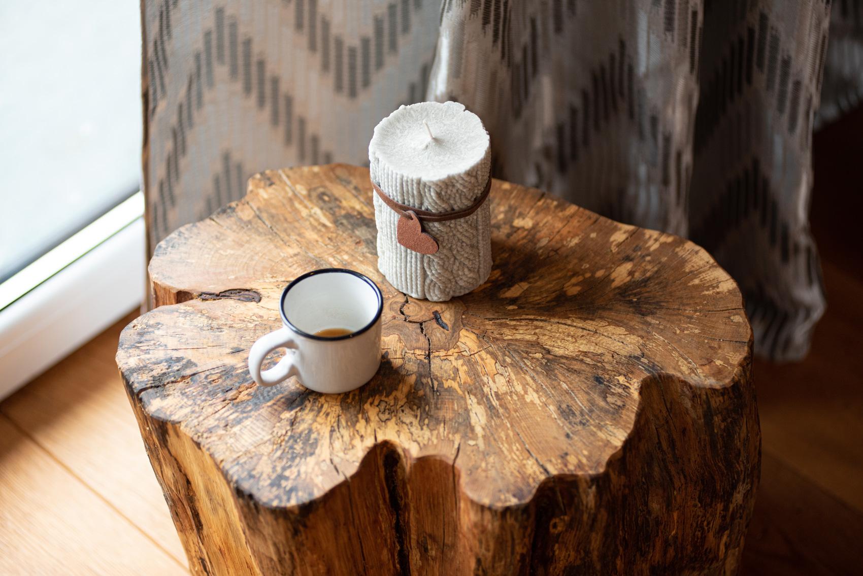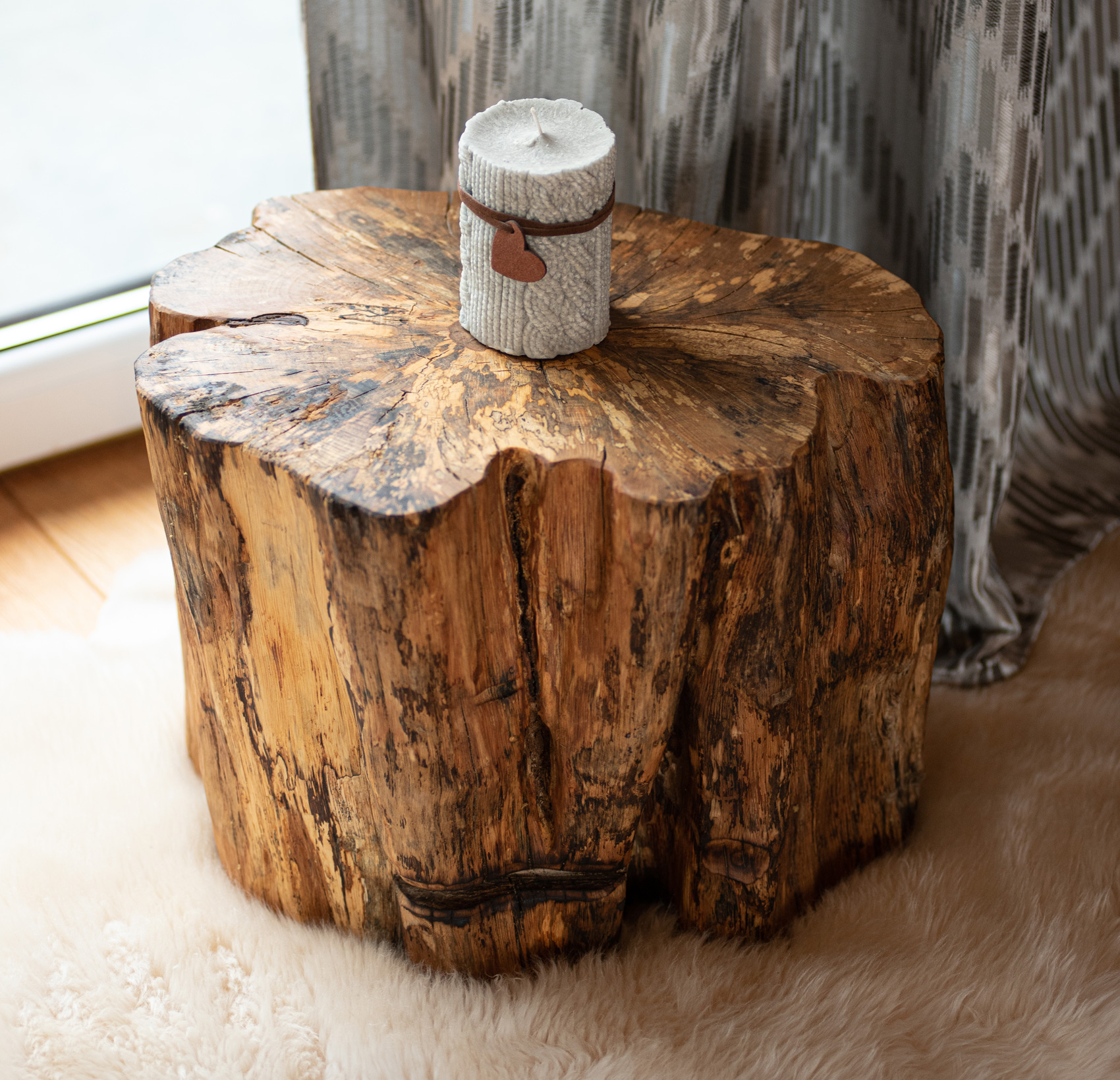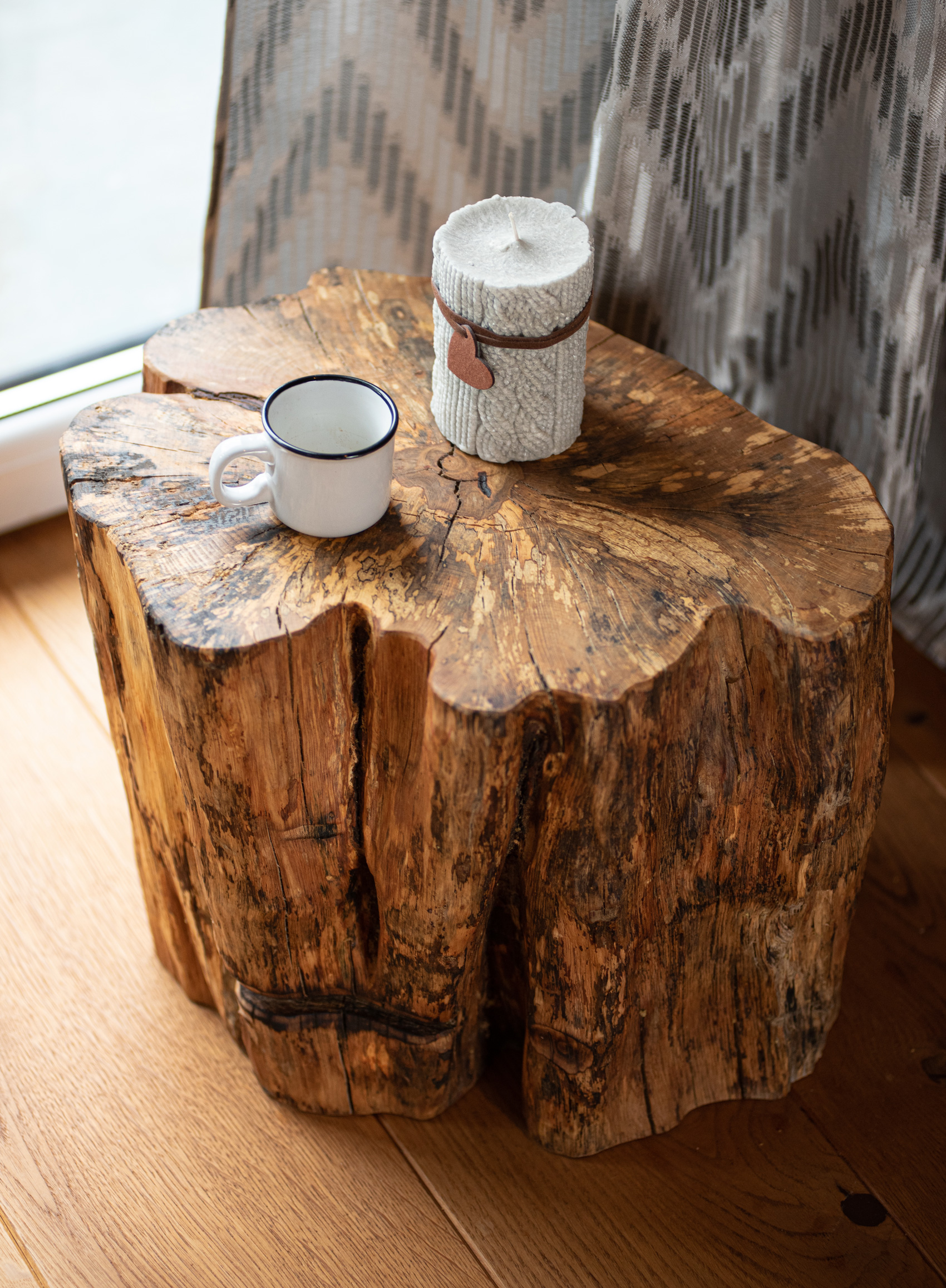 Taburetka z hrabového dreva z okolia Žiaru nad Hronom. Drevo bolo 4 roky vystavené vonkajším poveternostným podmienkam, aby sme docielili jeho výnimočný vzhľad. Vďaka vonkajšiemu uskladneniu drevo zvetralo a jeho farebnosť je ozvláštnená drevnou hnilobou. Boky taburetky sú kefované a vrch je brúsený do vysokej jemnosti. Povrch bol nakoniec upravený prírodným orechovým olejom a preleštený.